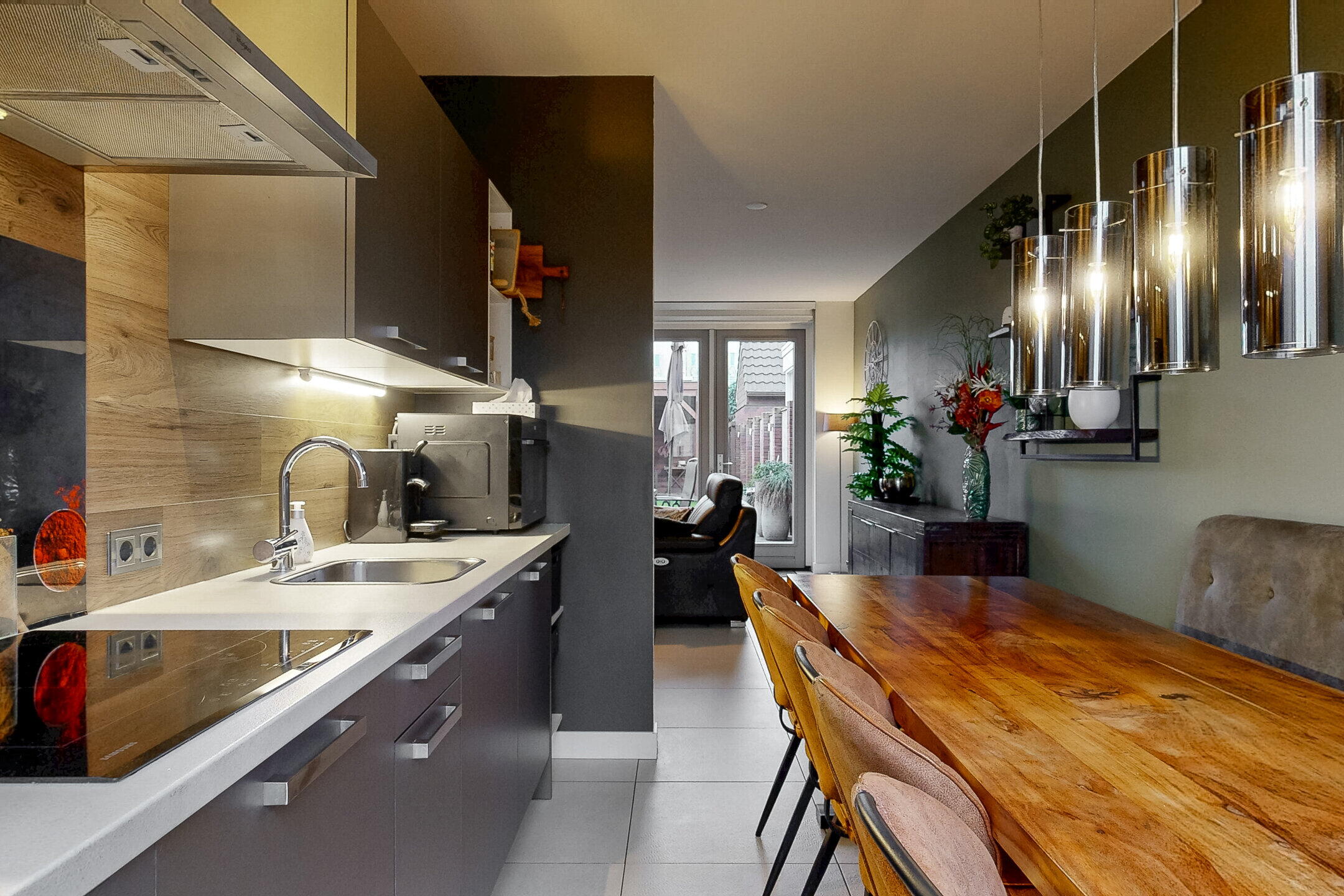 De open keuken is gesitueerd aan de voorzijde van de woning en biedt werk- en kastruimte. Dankzij de praktische opstelling is de keuken ideaal voor dagelijks gebruik én gezellige momenten met familie of vrienden.