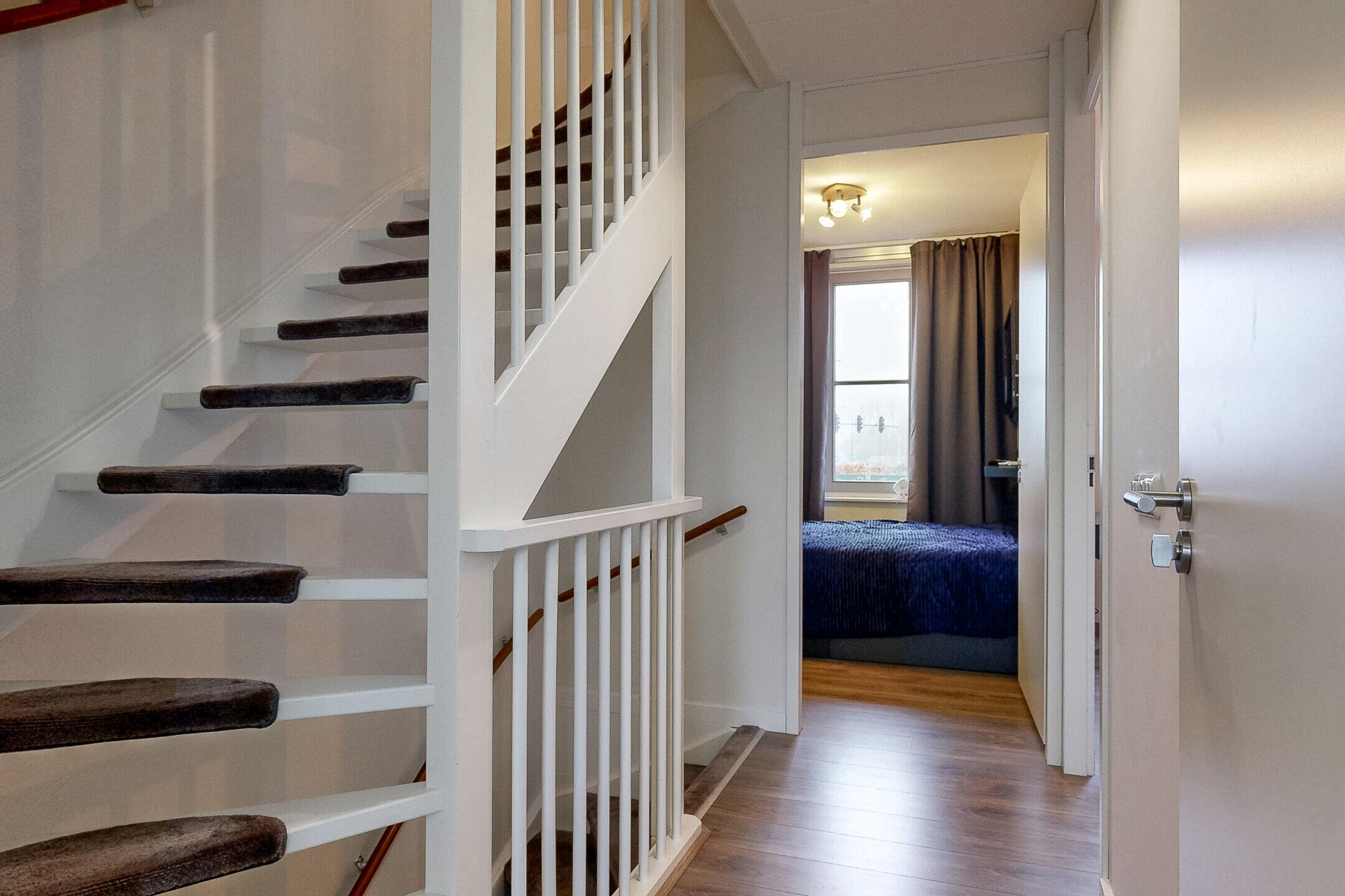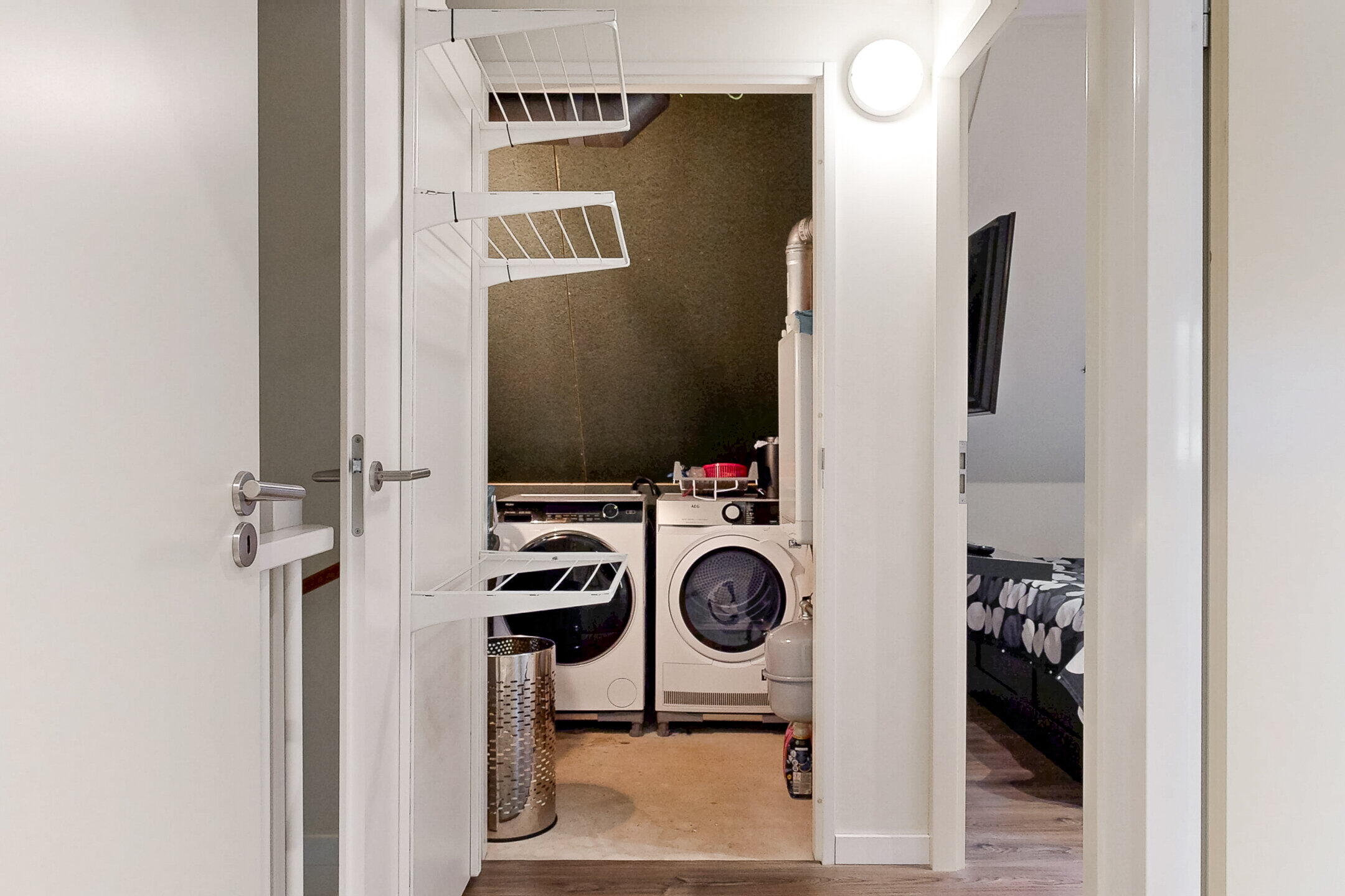 De tweede verdieping is verrassend ruim en praktisch ingedeeld. Hier bevinden zich twee volwaardige slaapkamers, ideaal als kinder-, werk- of logeerkamer en een aparte ruimte voor het washok, met aansluitingen voor wasmachine en droger. Dankzij deze indeling is de verdieping zeer functioneel en geschikt voor grotere gezinnen of thuiswerken.