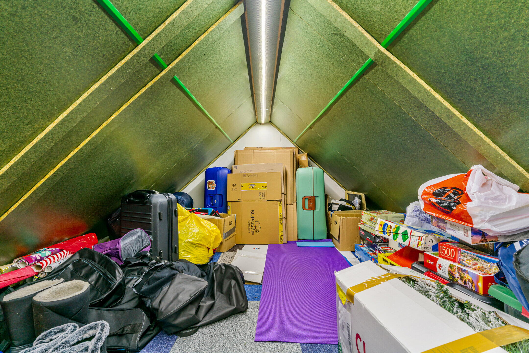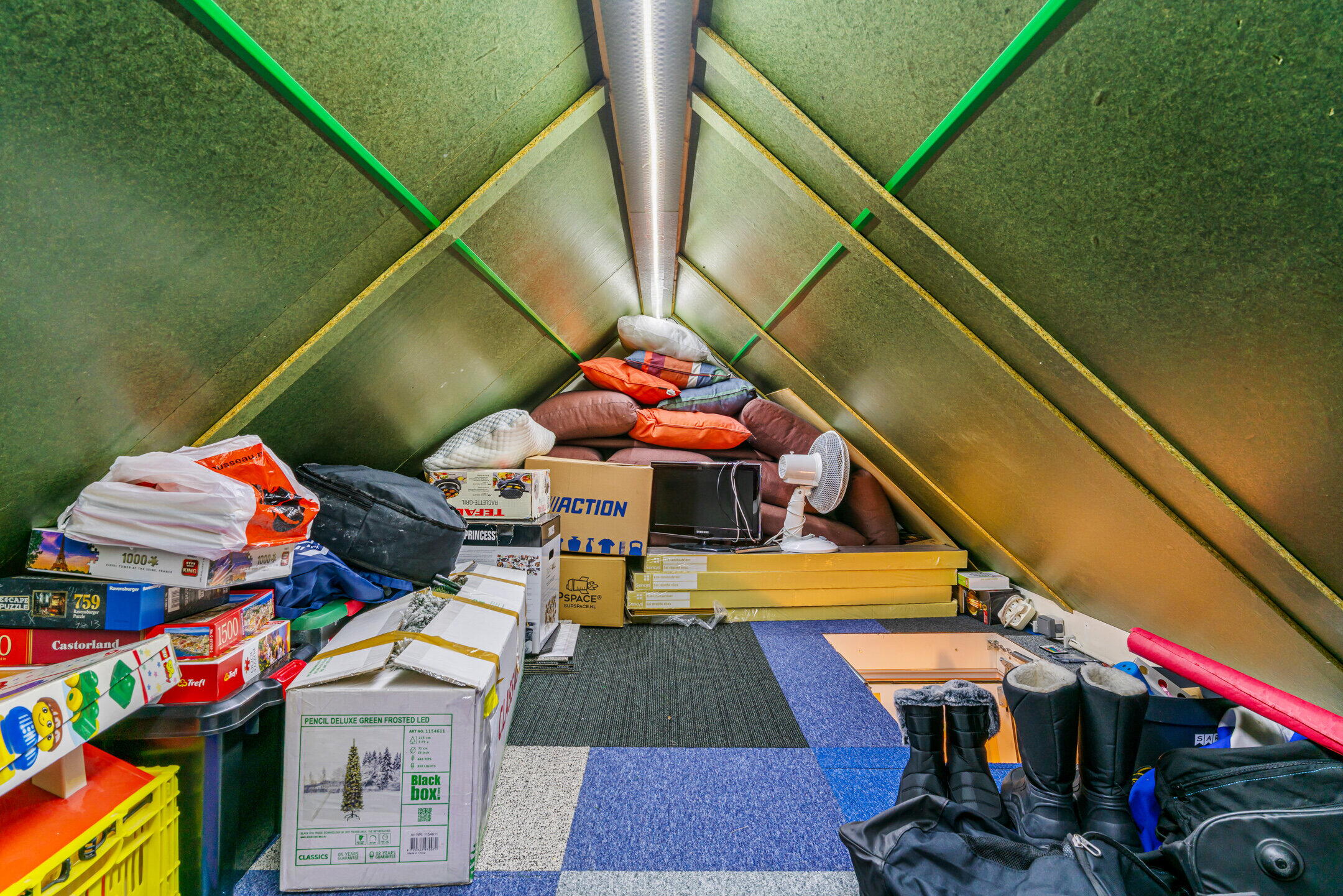 Boven de tweede verdieping bevindt zich een zolderruimte zonder vaste trap. Deze ruimte is bereikbaar via een vlizotrap en biedt volop extra bergruimte. Ideaal voor seizoensspullen, koffers en overige opslag.