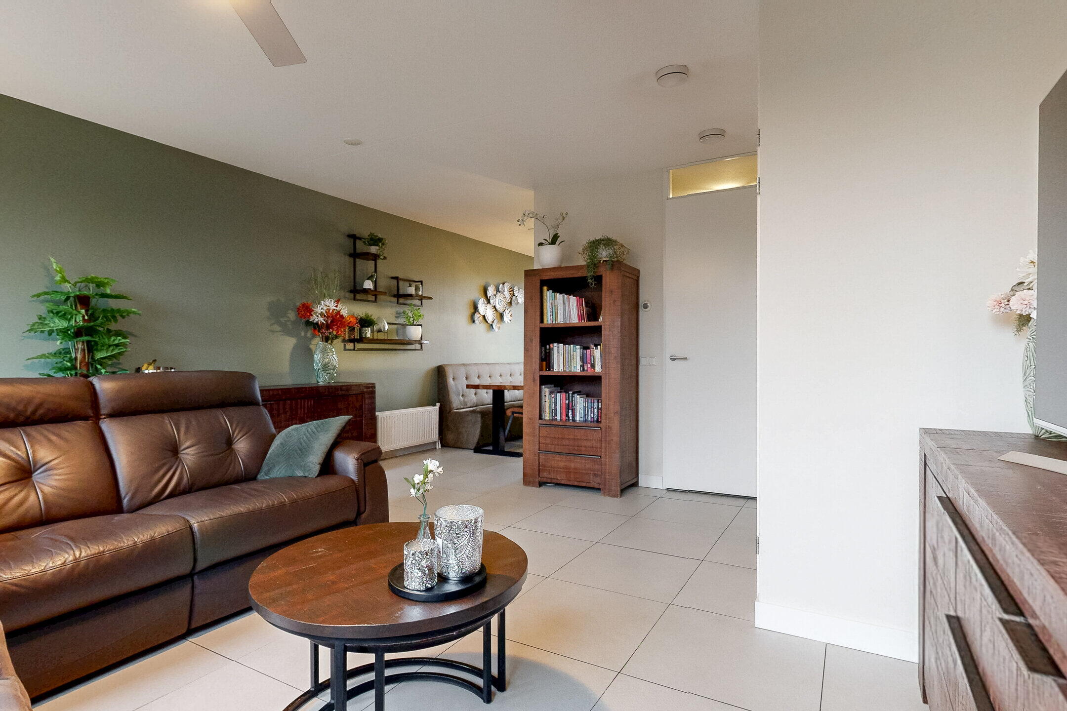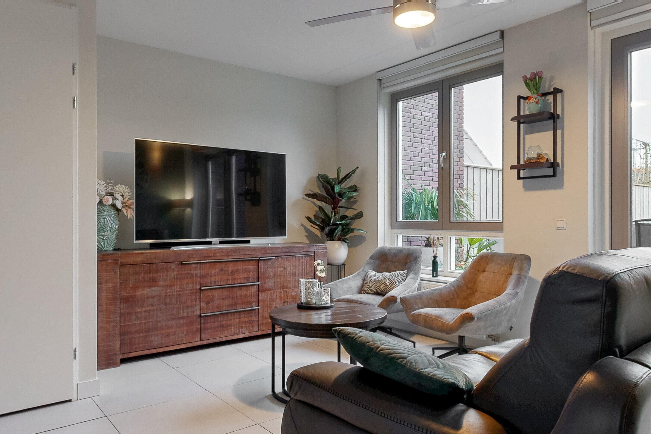 De woonkamer is licht en prettig ingedeeld, met ruimte voor zowel een comfortabele zithoek als een royale eethoek. Grote raampartijen aan de tuinzijde zorgen voor veel daglicht en een fijne verbinding met buiten. De strakke afwerking en neutrale basis maken deze ruimte direct instapklaar. In de woonkamer bevindt zich tevens een praktische trapkast.